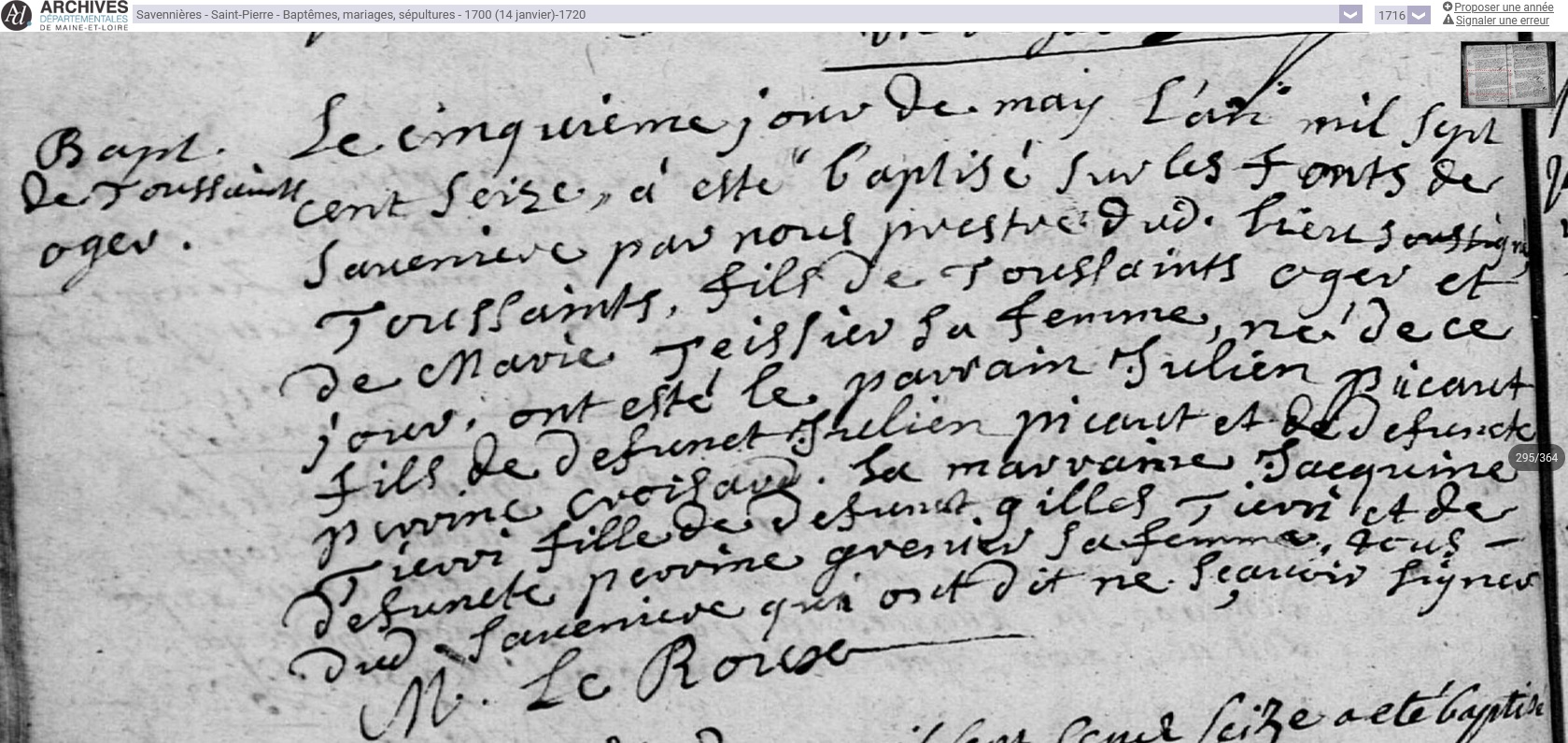 né le 5 mai 1716 à Savennières - Maine-et-Loire (49)
