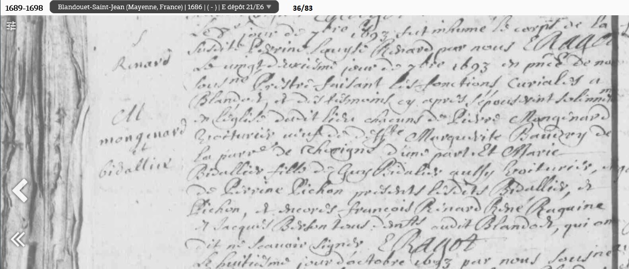 mariée le 22 septembre 1693 à Blandouet - Mayenne (53), avec