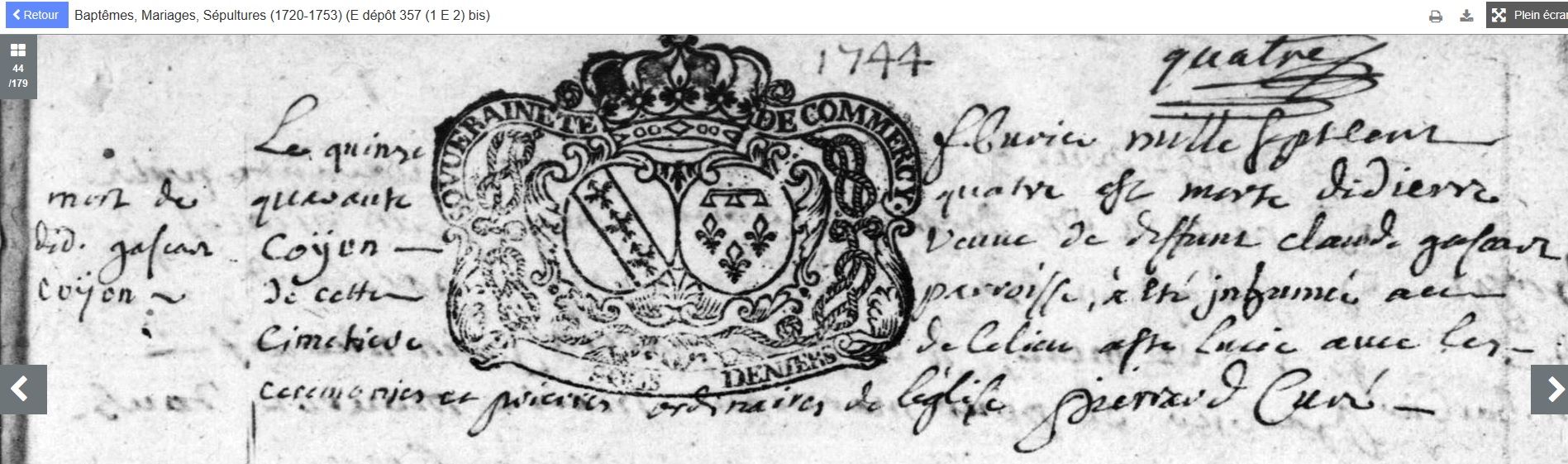 décédée le 15 février 1744 à Sampigny - Meuse (55) à l'âge de 89 ans environ