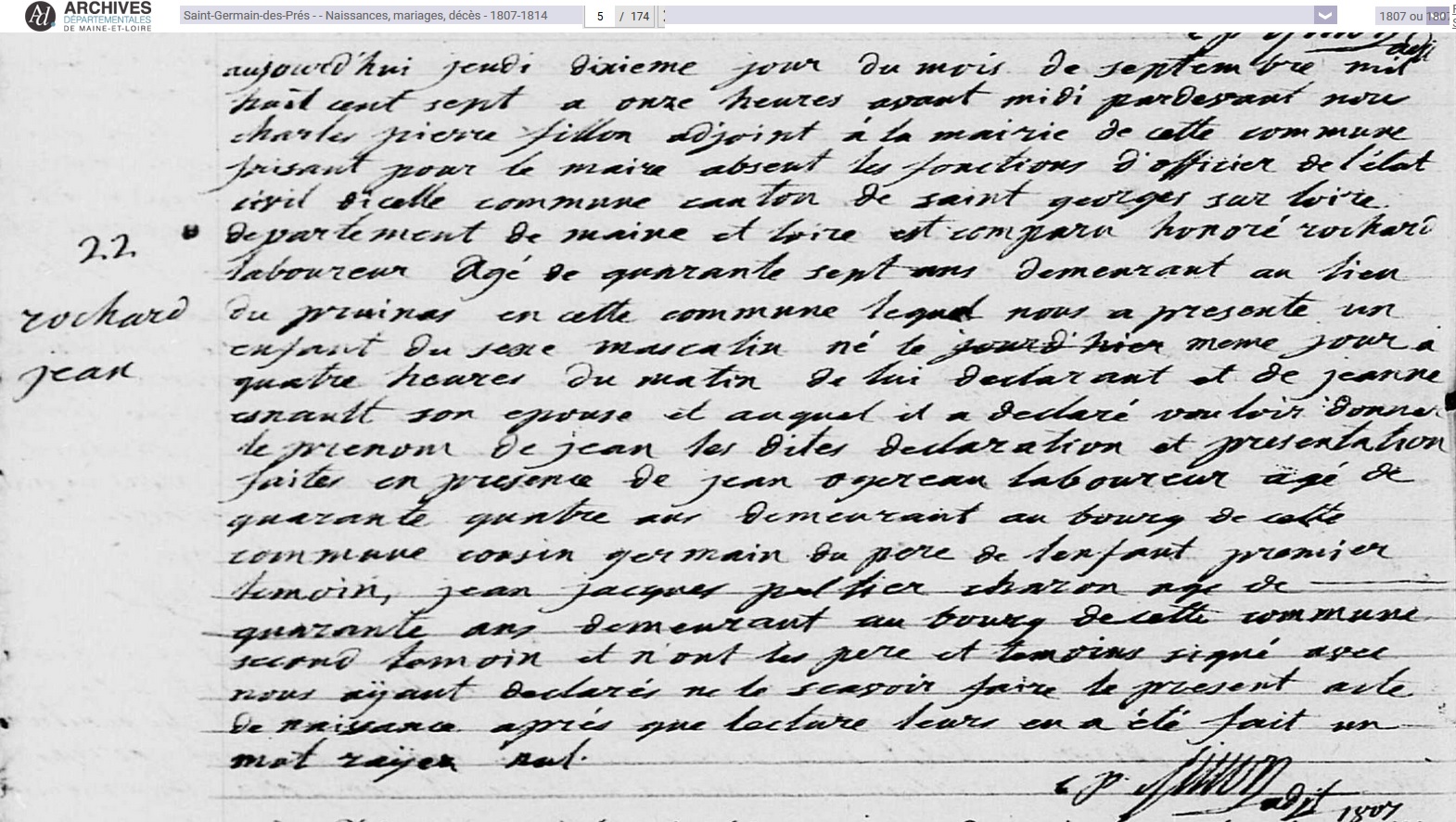 né le 10 septembre 1807 à Saint-Germain-des-Prés - Maine-et-Loire (49)