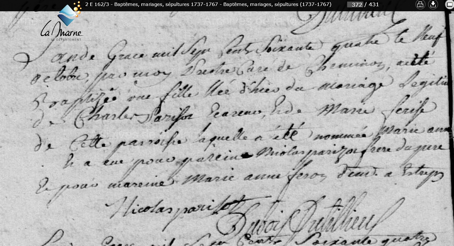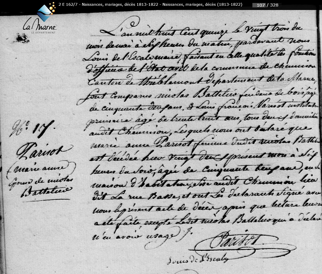 née le 8 octobre 1764 à Cheminon - Marne (51)