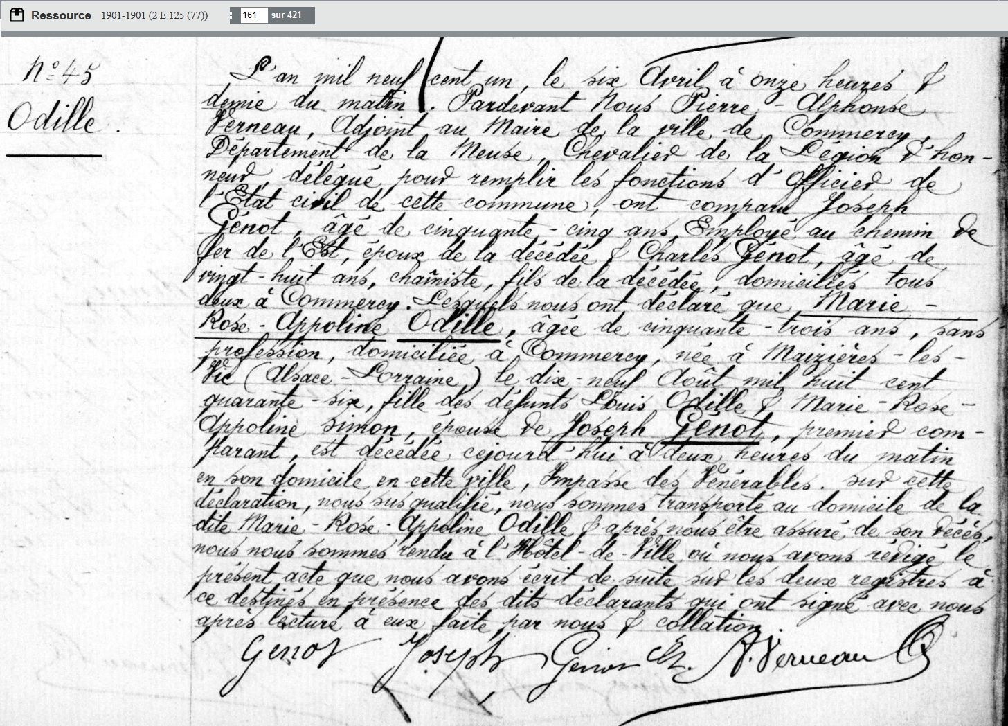 "Il semblerait que son ""père"" l'ait en fait adoptée suite au mariage avec sa mère. Elle est en effet déclarée SIMON Marie Rose Appoline sur les tables décennales de naissances."