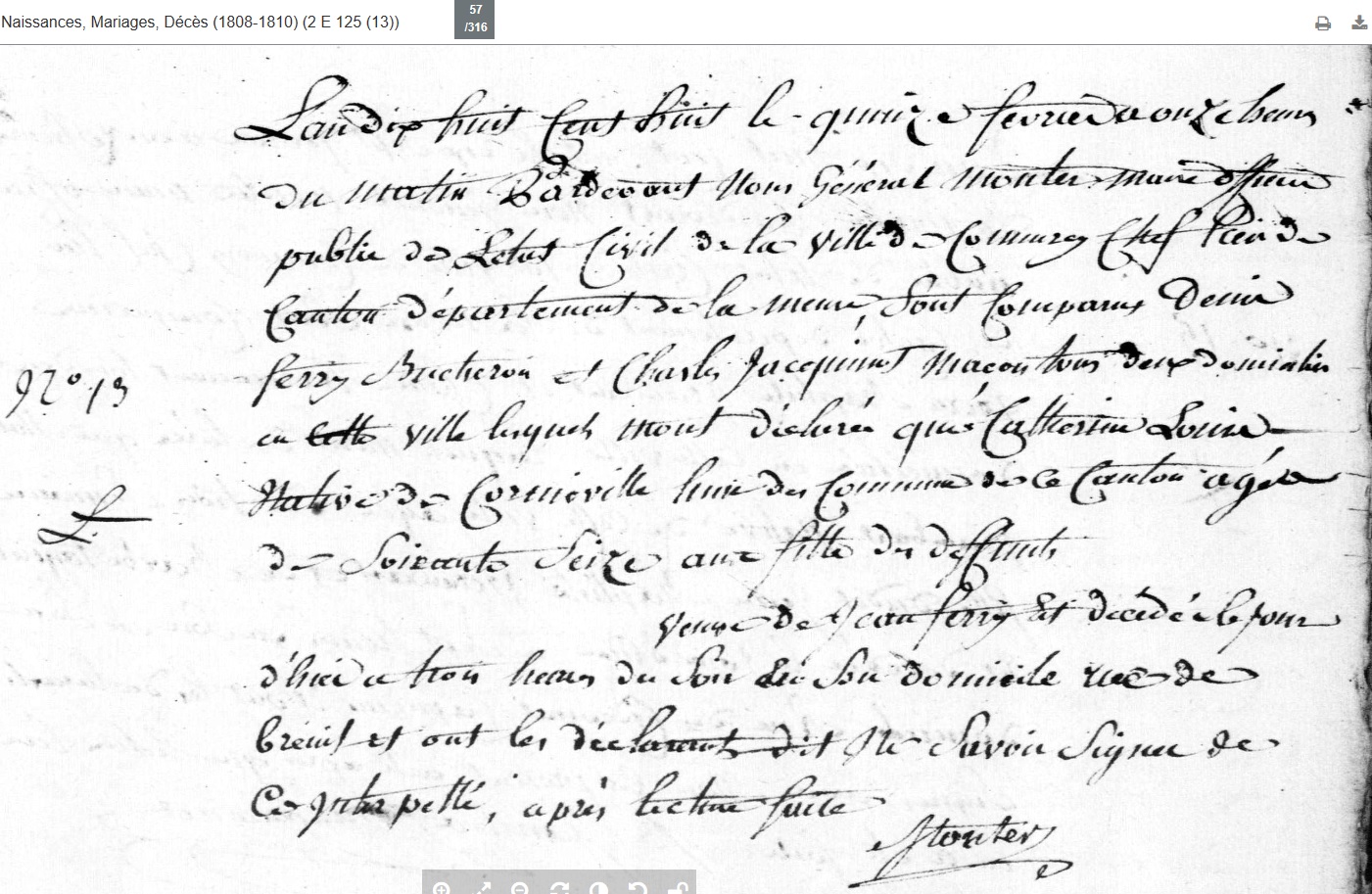 - née aux environs de 1732 à Corniéville - Meuse (55)
