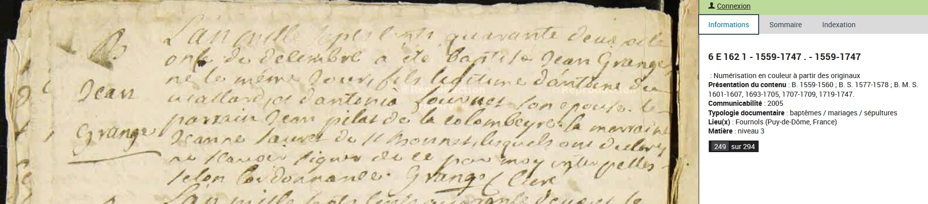 marié le 15 septembre 1778 à Fournols - Puy-de-Dôme (63), avec
