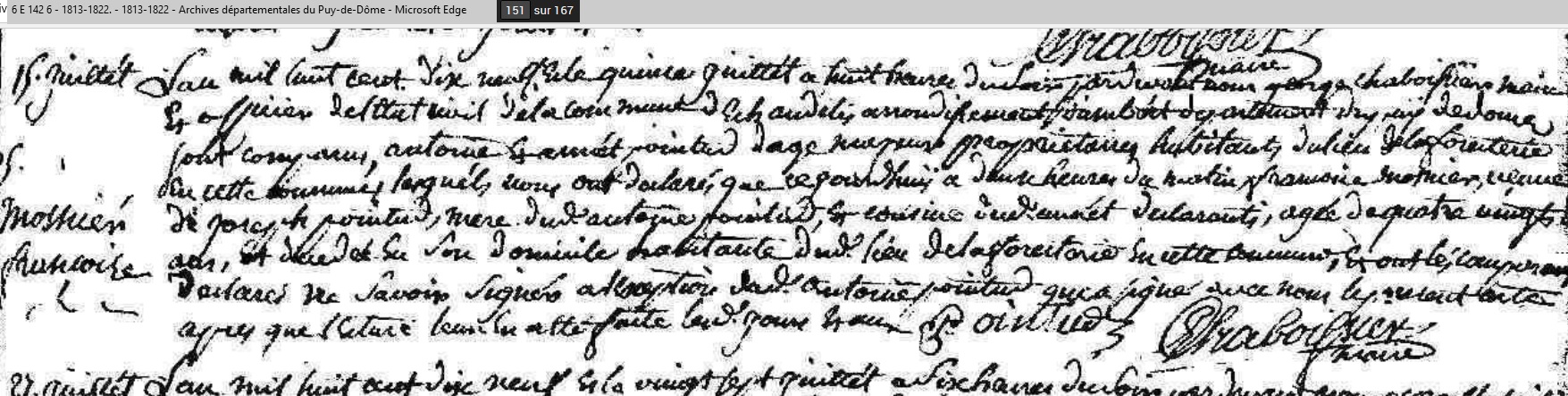 décédée le 15 juillet 1819 à Échandelys - Puy-de-Dôme (63) à l'âge de 80 ans environ