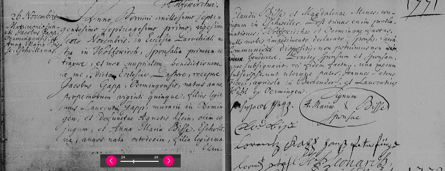 - Eschwiller : Avant 1768, les archives sont communes avec Postroff