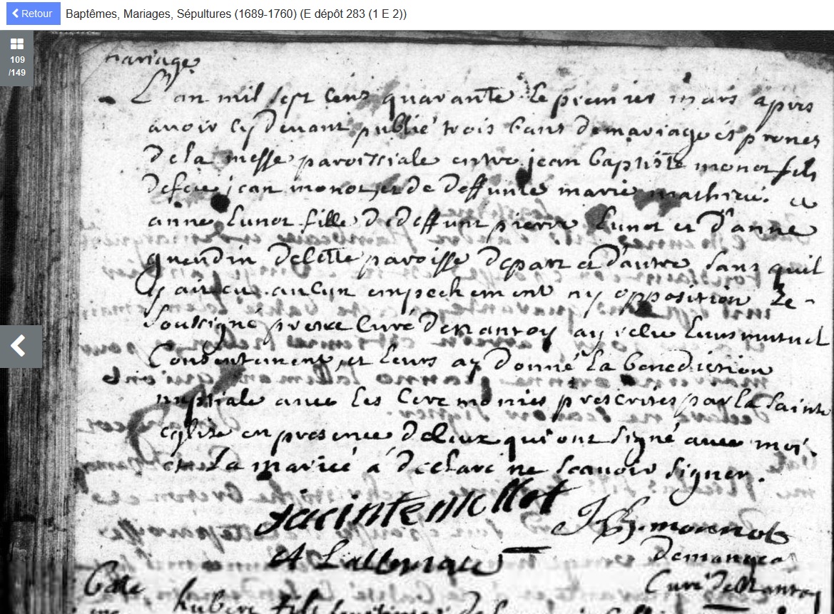 marié le 1er mars 1740 à Nantois - Meuse (55), avec