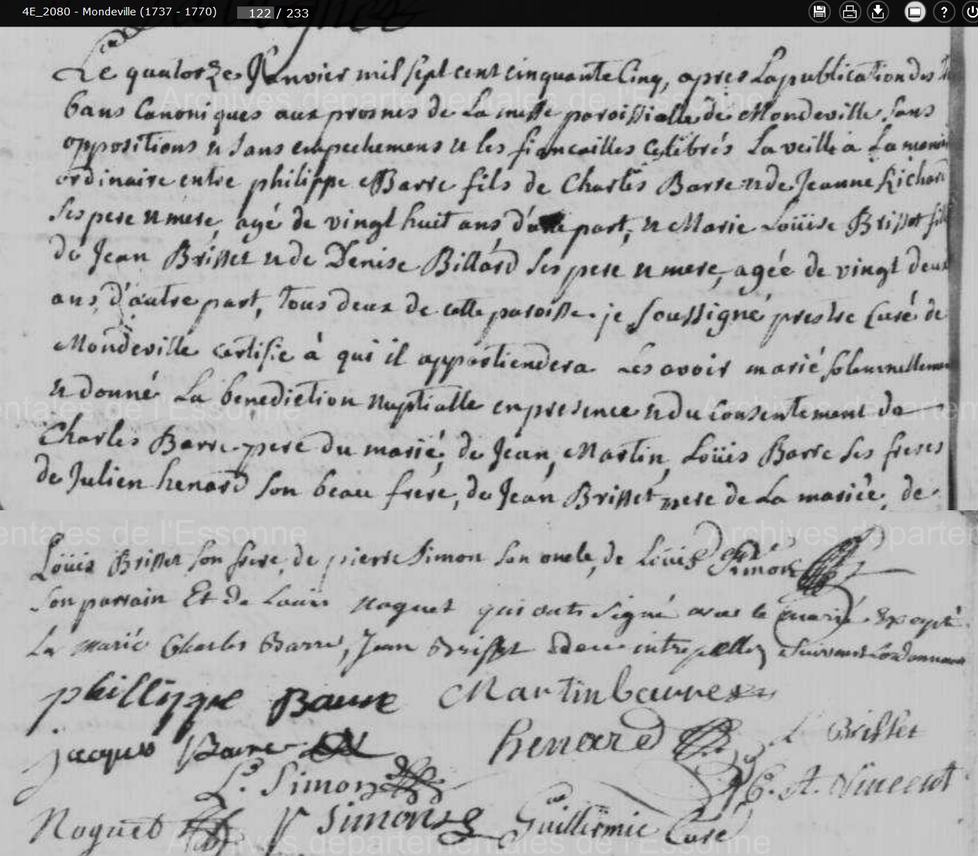 mariée le 14 janvier 1755 à Mondeville - Essonne (91), avec