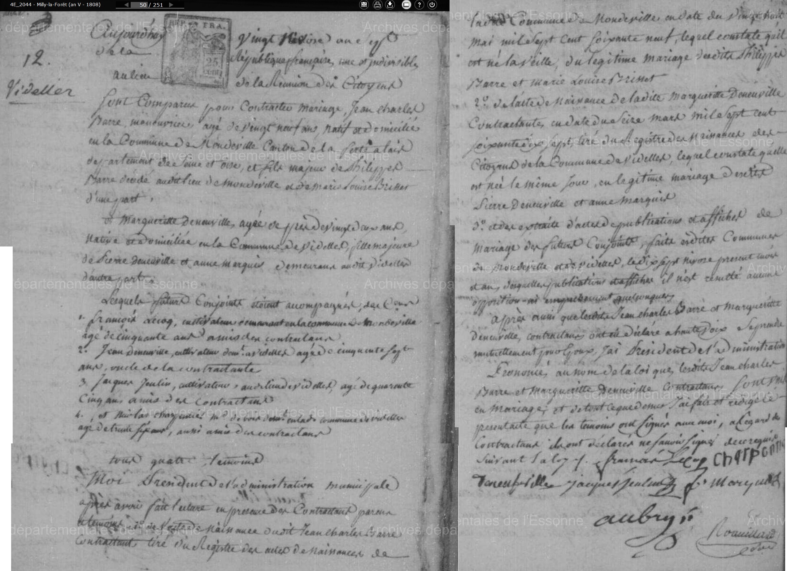 > A noter qu'à cette époque les registres de mariage sont regroupés (ici Milly la forêt)