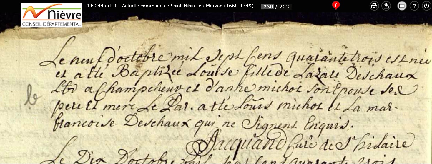 née le 9 octobre 1743 à Saint-Hilaire-en-Morvan - Nièvre (58)