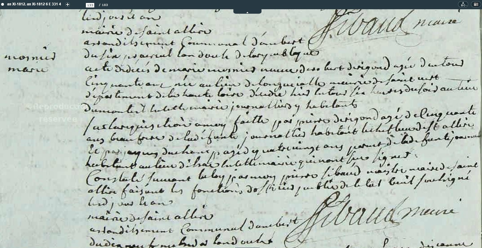 décédée le 26 mai 1804 à Saint-Alyre-d'Arlanc - Puy-de-Dôme (63) à l'âge de 50 ans environ