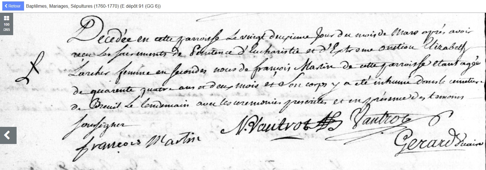 Veuve de Nicolas Millot, pas trace de sa naissance à Commercy malgré la précision de son âge sur l'acte de décès.