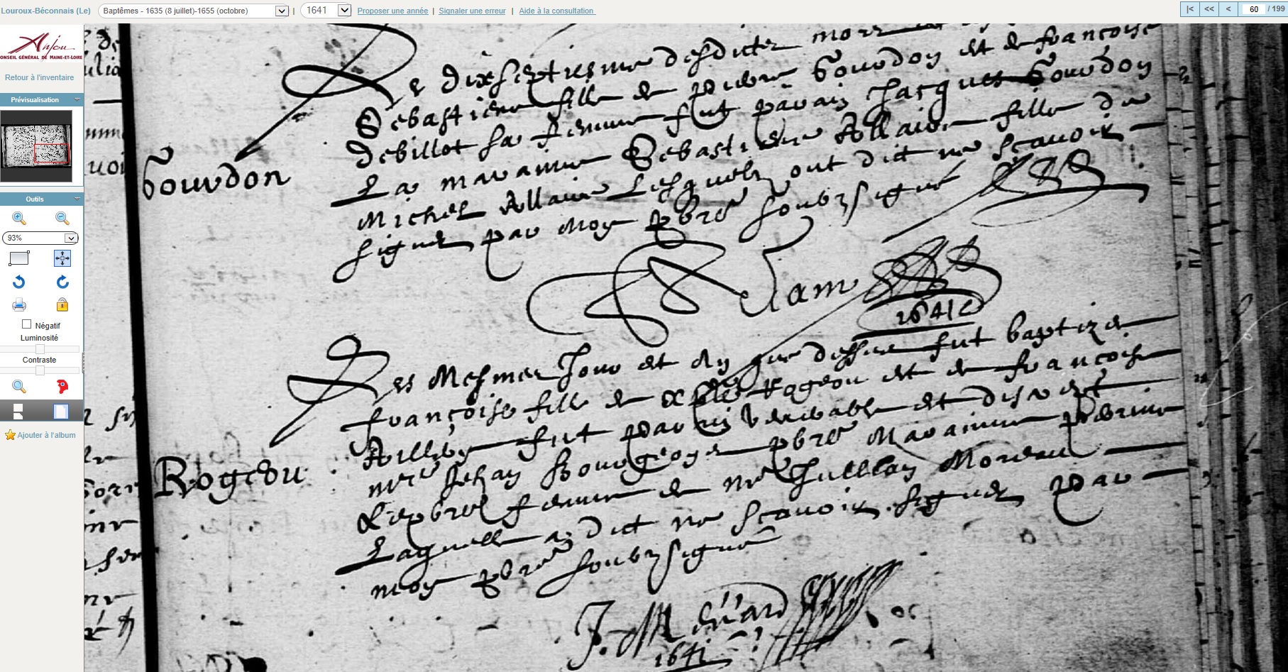 née le 17 mars 1641 à Le Louroux-Béconnais - Maine-et-Loire (49)