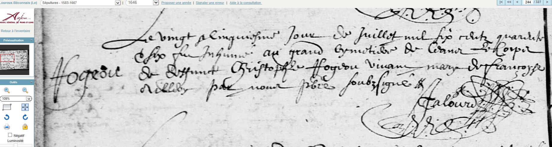 décédé le 25 juillet 1646 à Le Louroux-Béconnais - Maine-et-Loire (49)