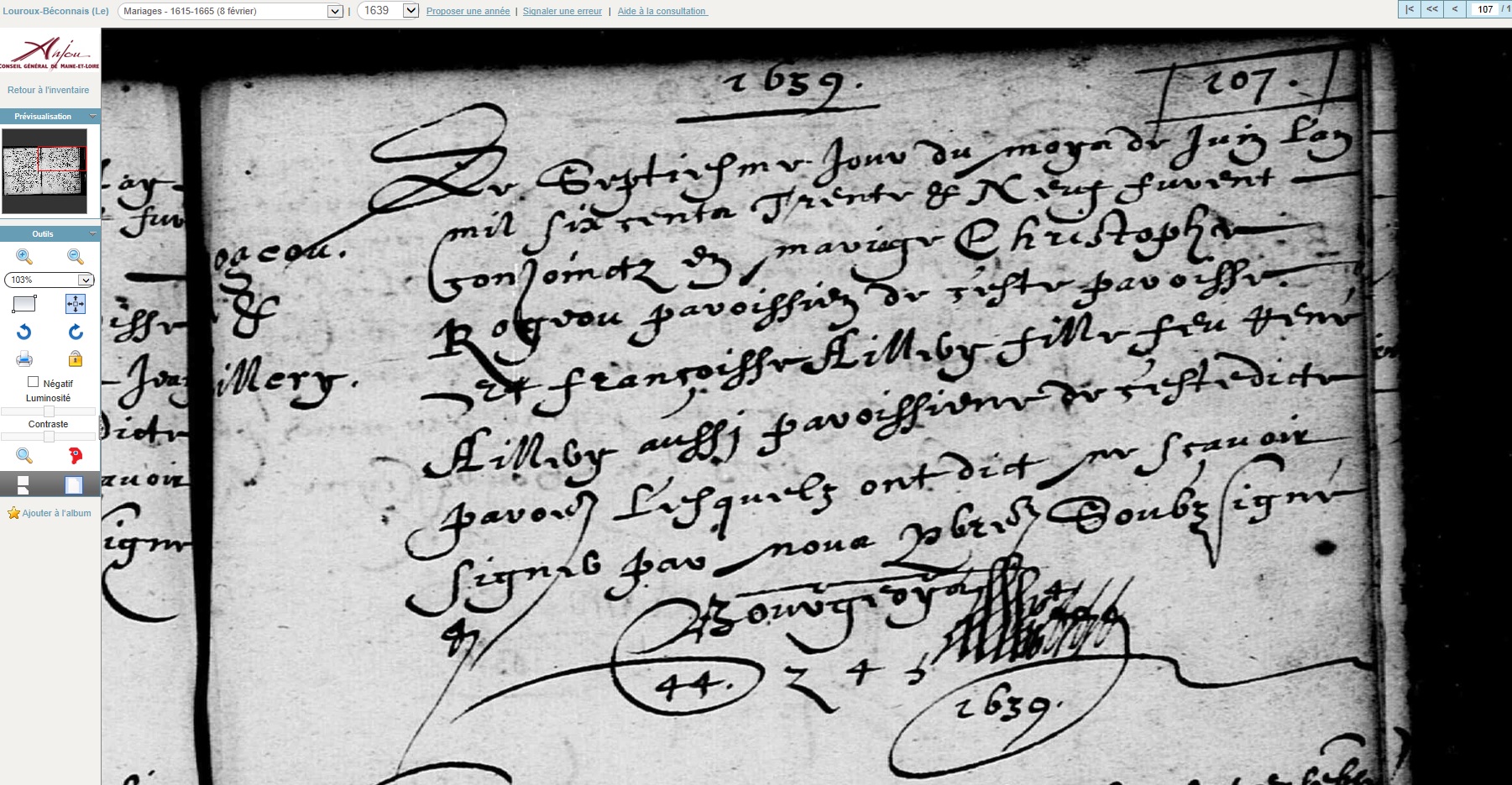 marié le 7 juin 1639 à Le Louroux-Béconnais - Maine-et-Loire (49), avec