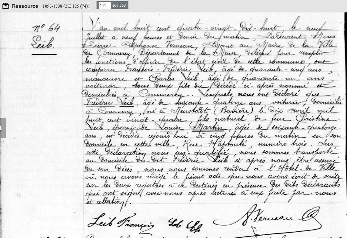 Fils naturel.Domicilié à Commercy en 1881 (au 3 rue Haptouté en 1898). Autre Profession: Cultivateur