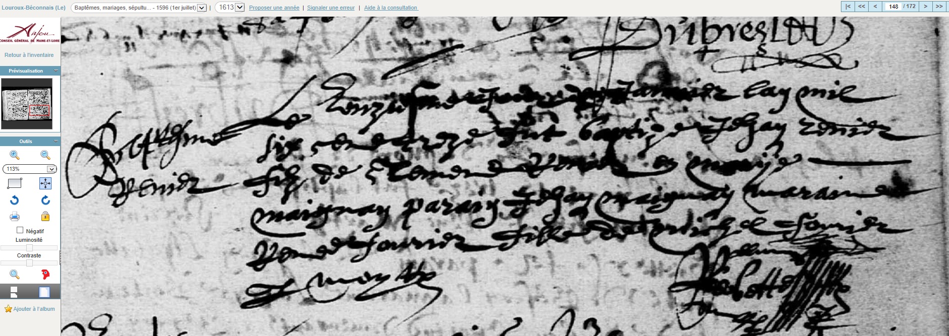 né le 11 janvier 1613 à Le Louroux-Béconnais - Maine-et-Loire (49)