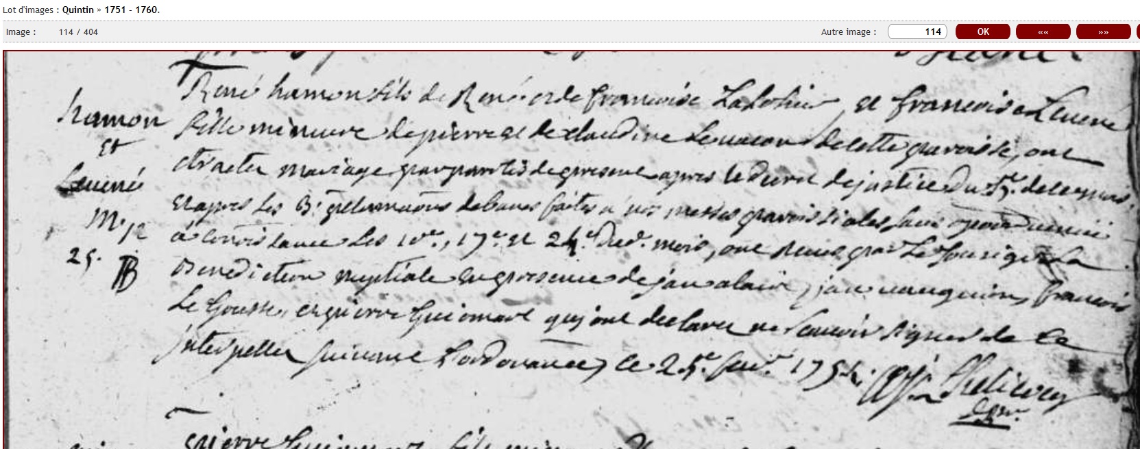 marié le 25 février 1754 à Quintin - Côtes d'Armor (22), avec