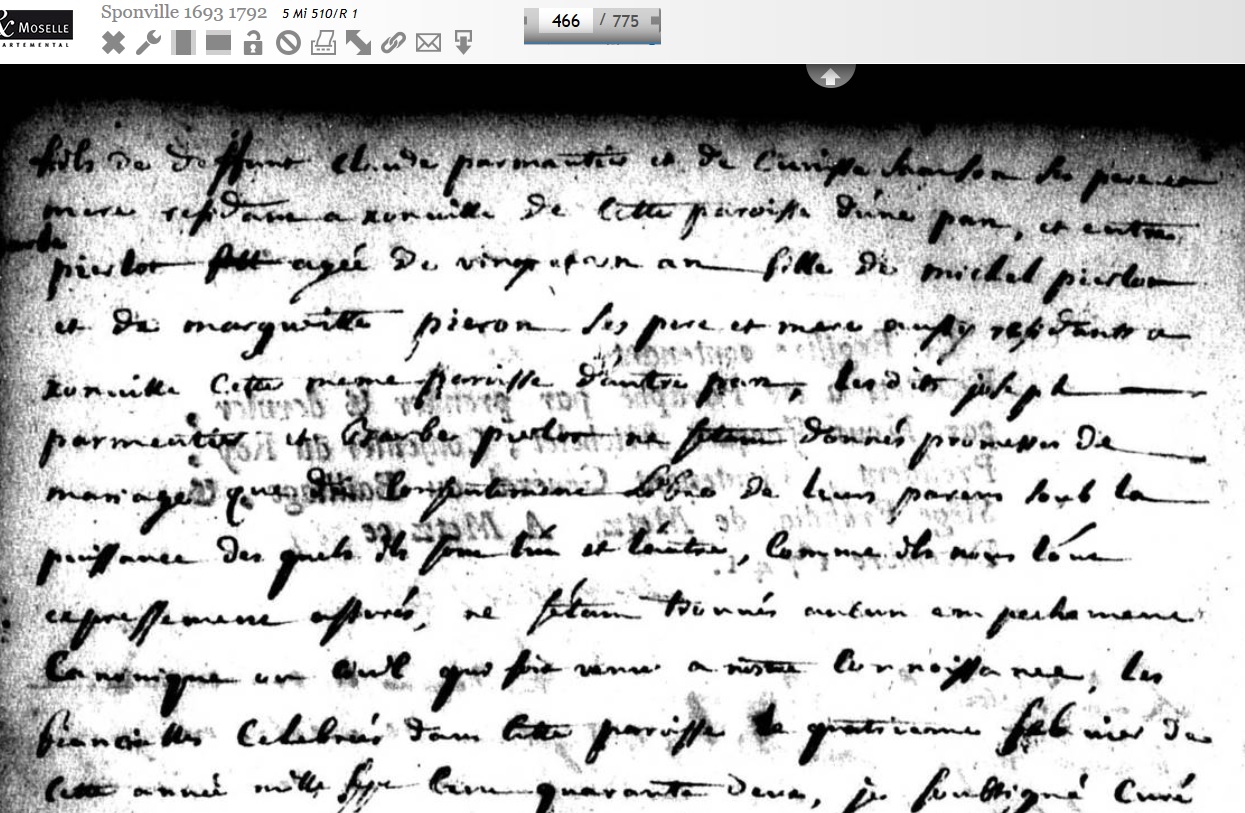 Marié à Sponville en janvier 1742 (p 465/775) avec Barbe Pierlot. Son père Claude est alors déjà noté défunt.