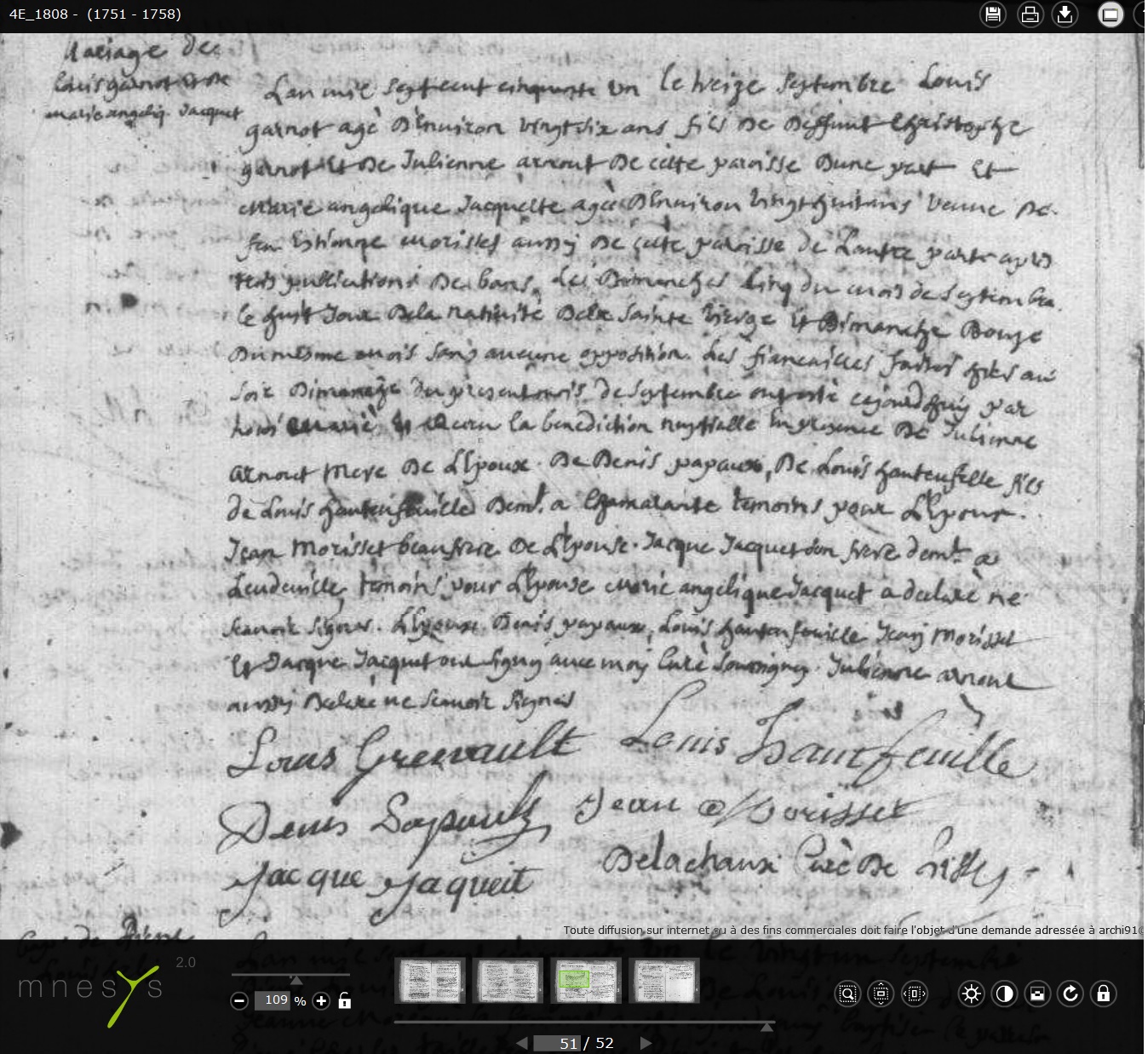 M : Veuf de Marie Angélique JAQUET (cf Autre acte notable 13/09/1751).