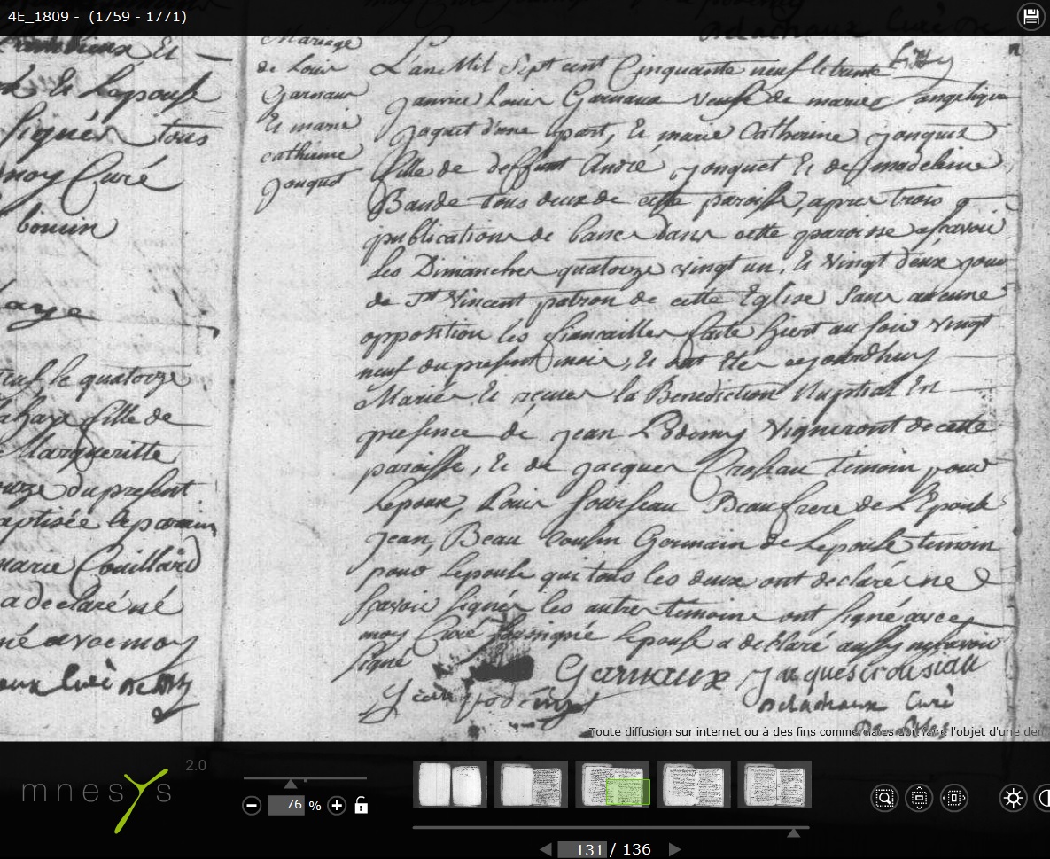 mariée le 30 janvier 1759 à Lisses - Essonne (91), avec