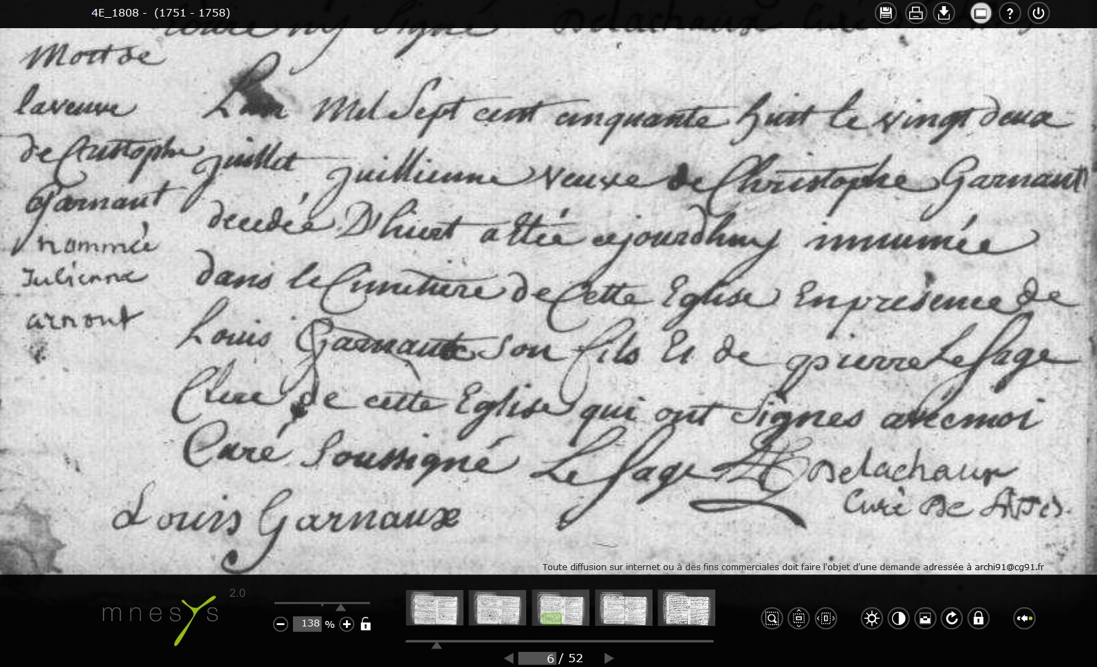 décédée le 21 juillet 1758 à Lisses - Essonne (91)