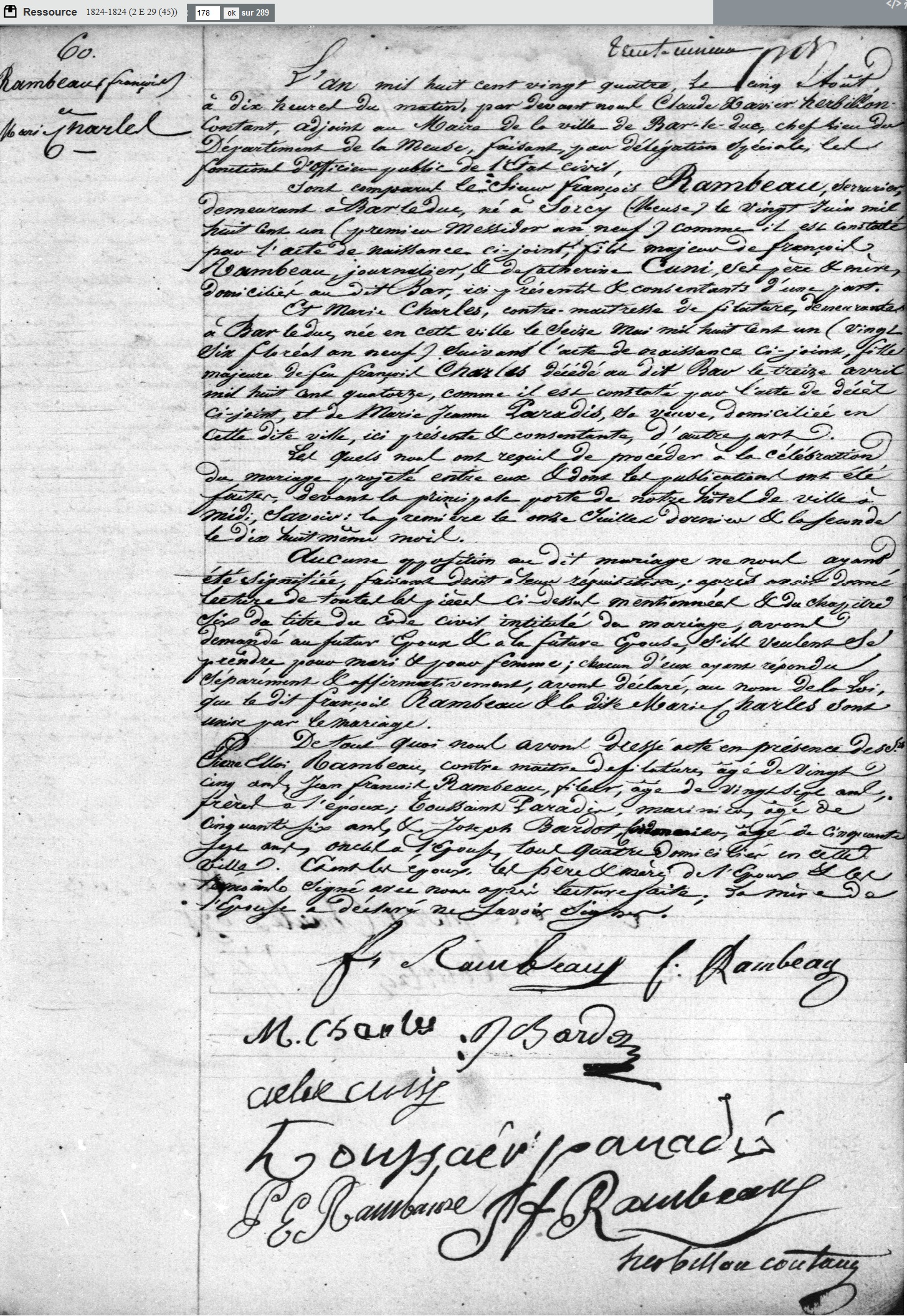 mariée le 5 août 1824 à Bar-le-Duc - Meuse (55), avec