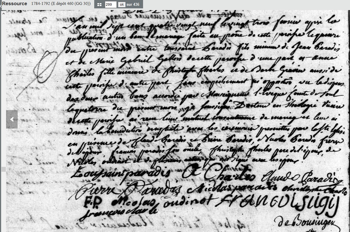 mariée le 23 février 1789 à Bar-le-Duc - Meuse (55), avec