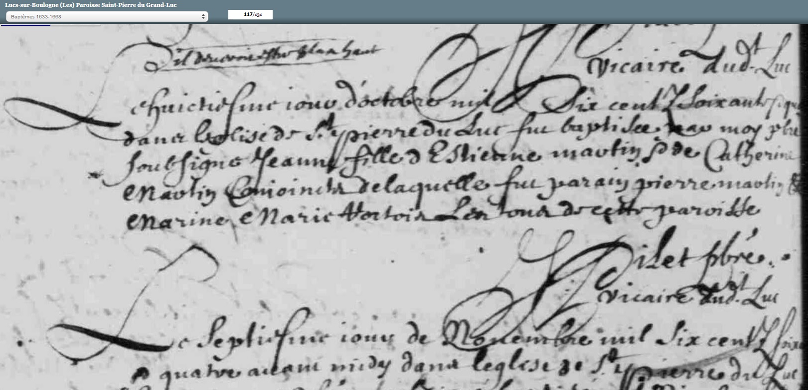 née le 8 octobre 1664 à Les Lucs-sur-Boulogne - Vendée (85)