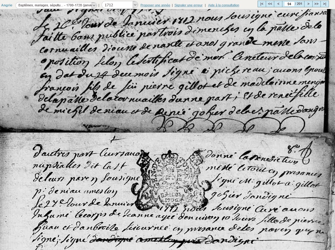 marié le 26 janvier 1712 à Angrie - Maine-et-Loire (49), avec