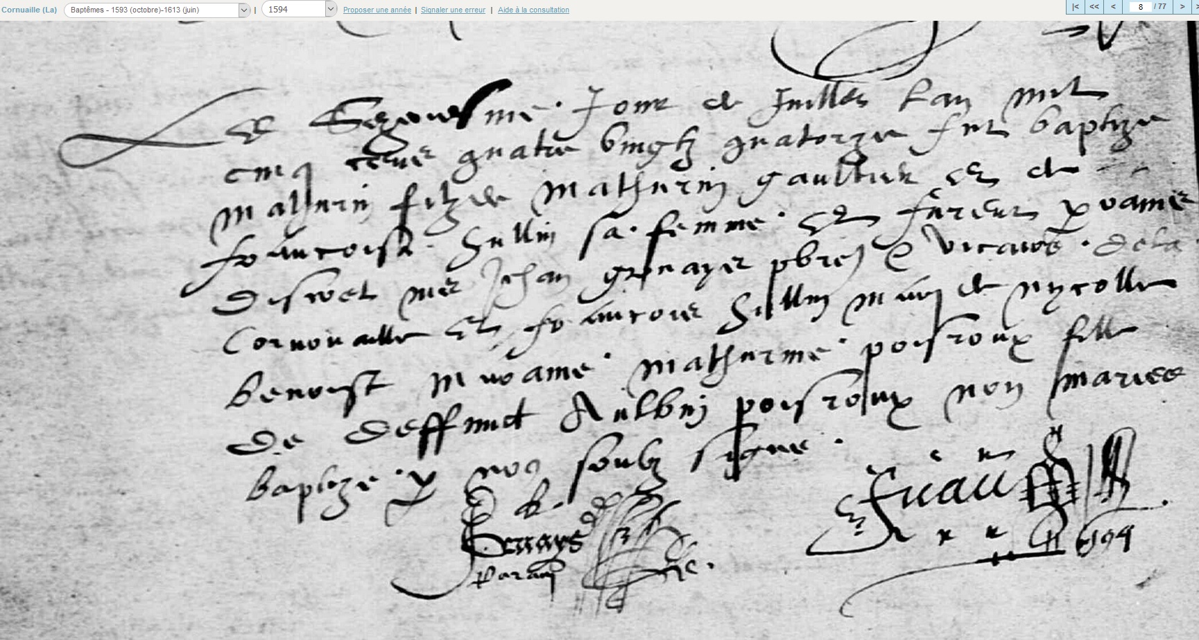 décédé le 23 décembre 1671 à La Cornuaille - Maine-et-Loire (49) à l'âge de 77 ans 5 mois et 7 jours