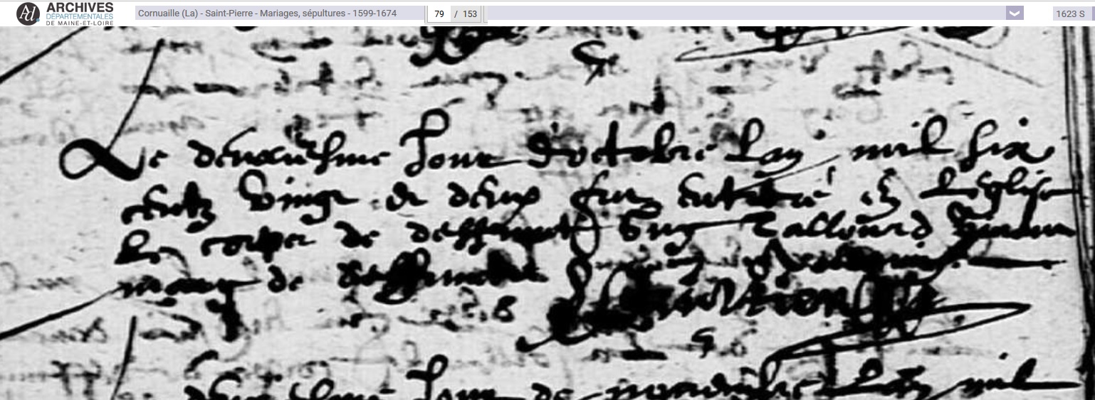 - marié à La Cornuaille - Maine-et-Loire (49), avec Jeanne AUDOUIN (1561-1613)