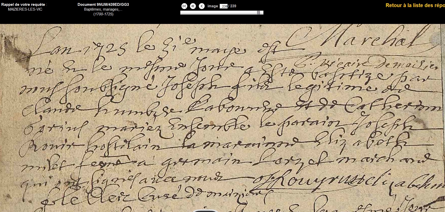 - décédé le 18 mai 1811 à Maizieres les vic - Moselle (57) à l'âge de 85 ans 11 mois et 17 jours