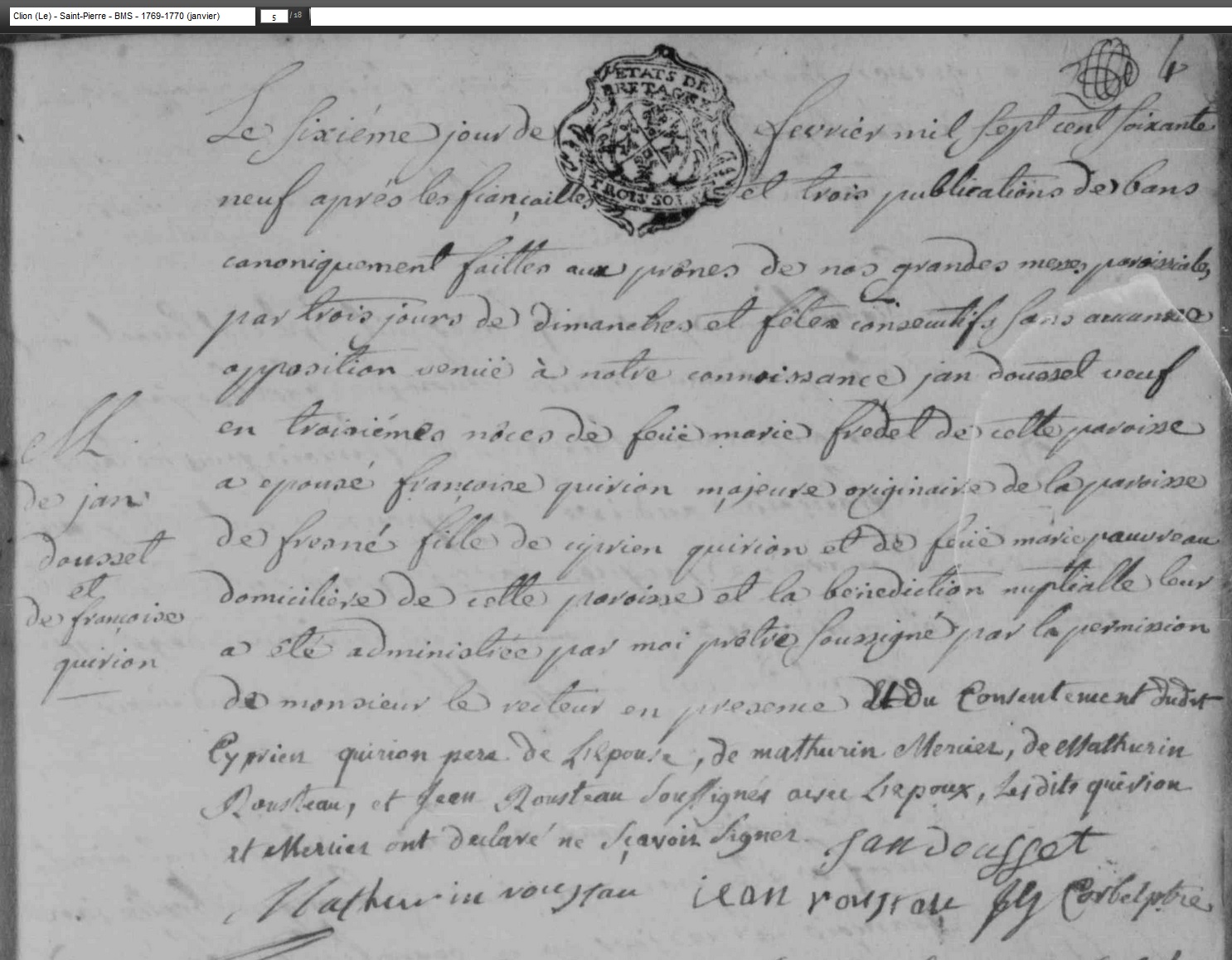 mariée le 6 février 1769 à Le Clion-sur-Mer - Loire-Atlantique (44), avec