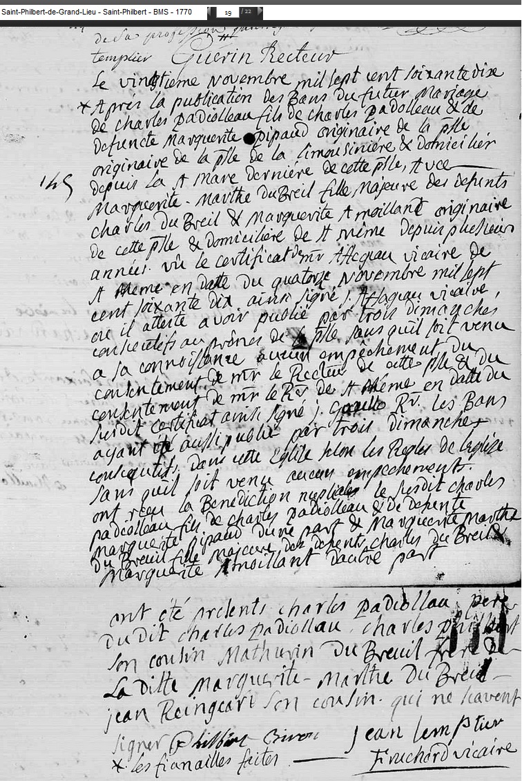 marié le 20 novembre 1770 à Saint-Philbert-de-Grand-Lieu - Loire-Atlantique (44), avec
