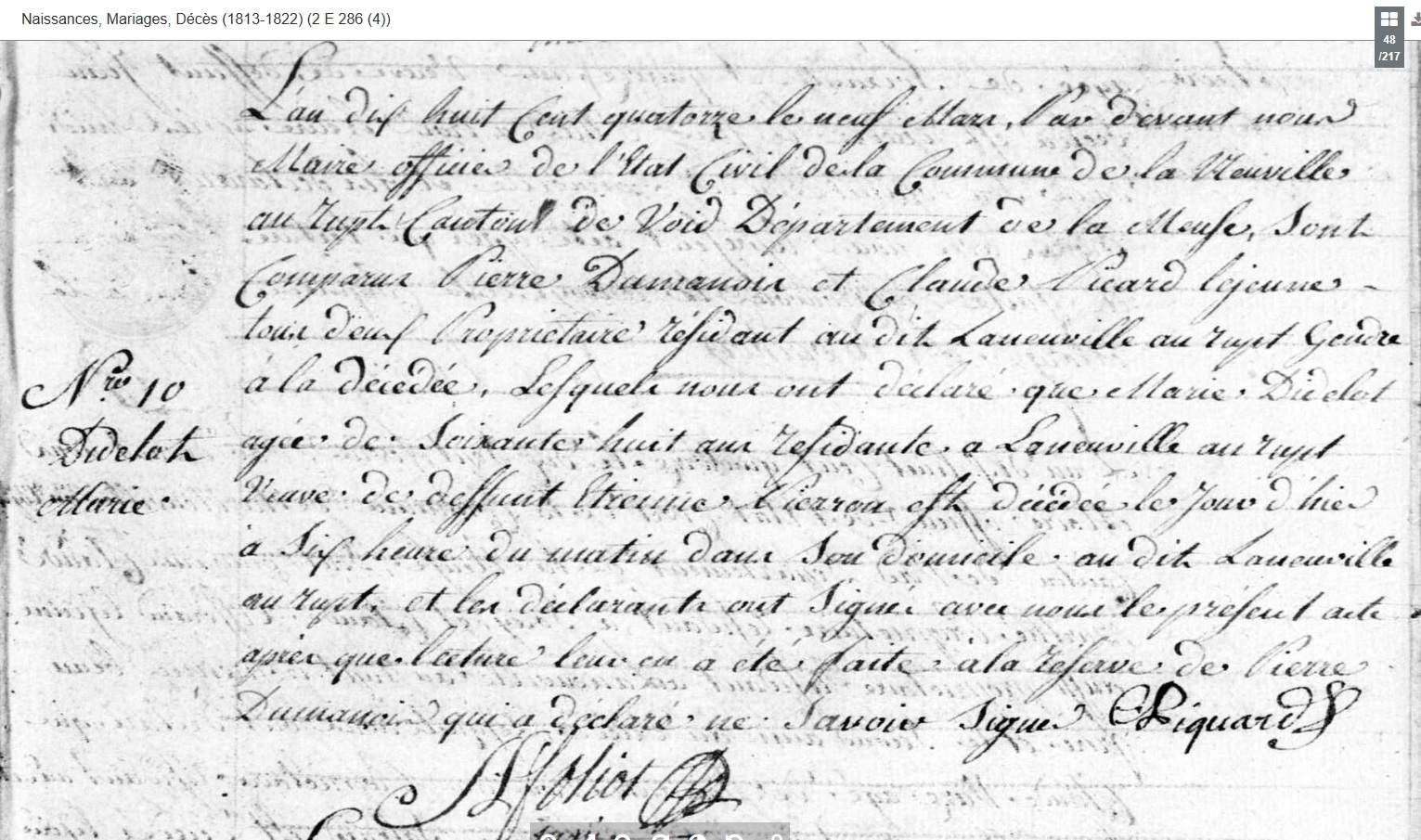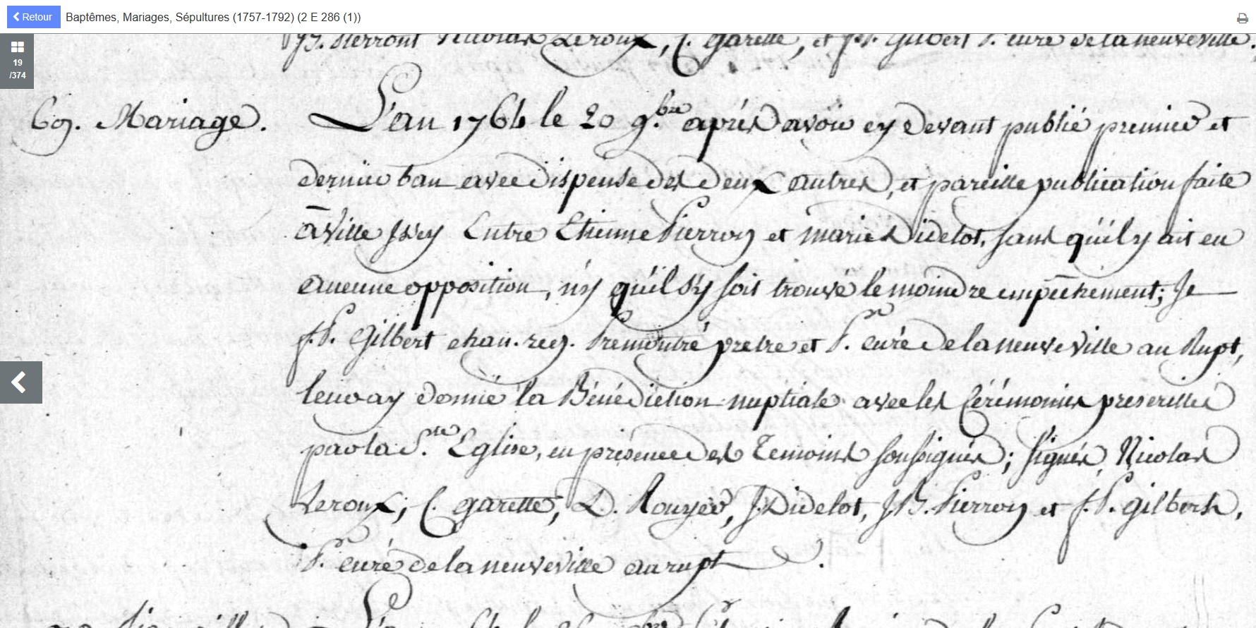- mariée le 20 novembre 1764 à Laneuville-au-Rupt - Meuse (55), avec Etienne PIERRON (1741-1814)
