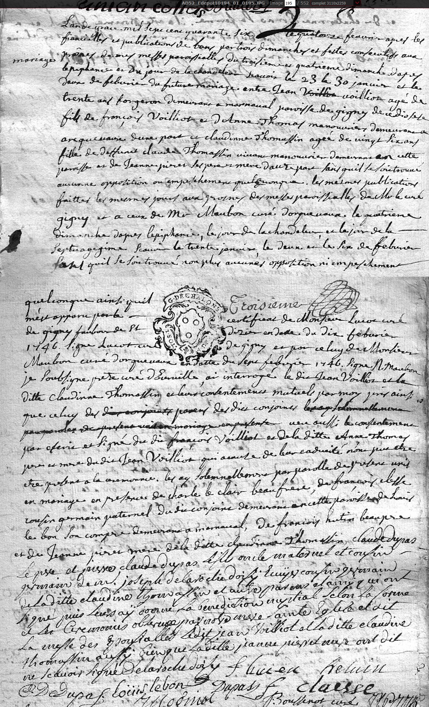 mariée le 14 février 1746 à Eurville - Haute-Marne (52), avec