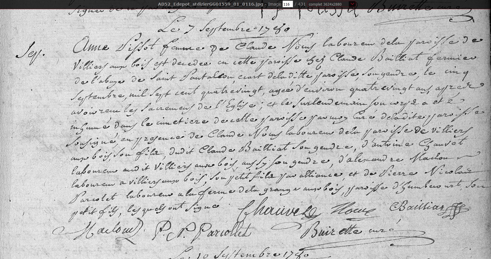 née le 7 juillet 1701 à Villiers-aux-Bois - Haute-Marne (52)
