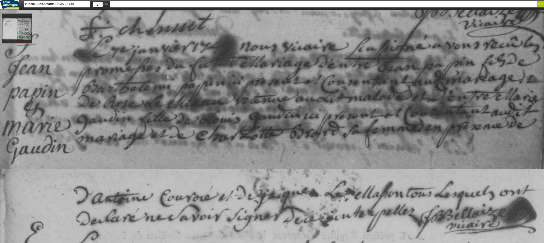 mariée le 7 janvier 1749 à Puceul - Loire-Atlantique (44), avec