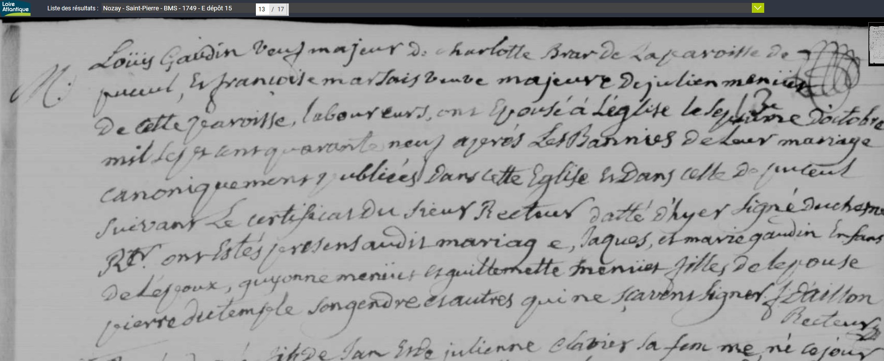 marié le 2 juillet 1715 à Abbaretz - Loire-Atlantique (44), avec