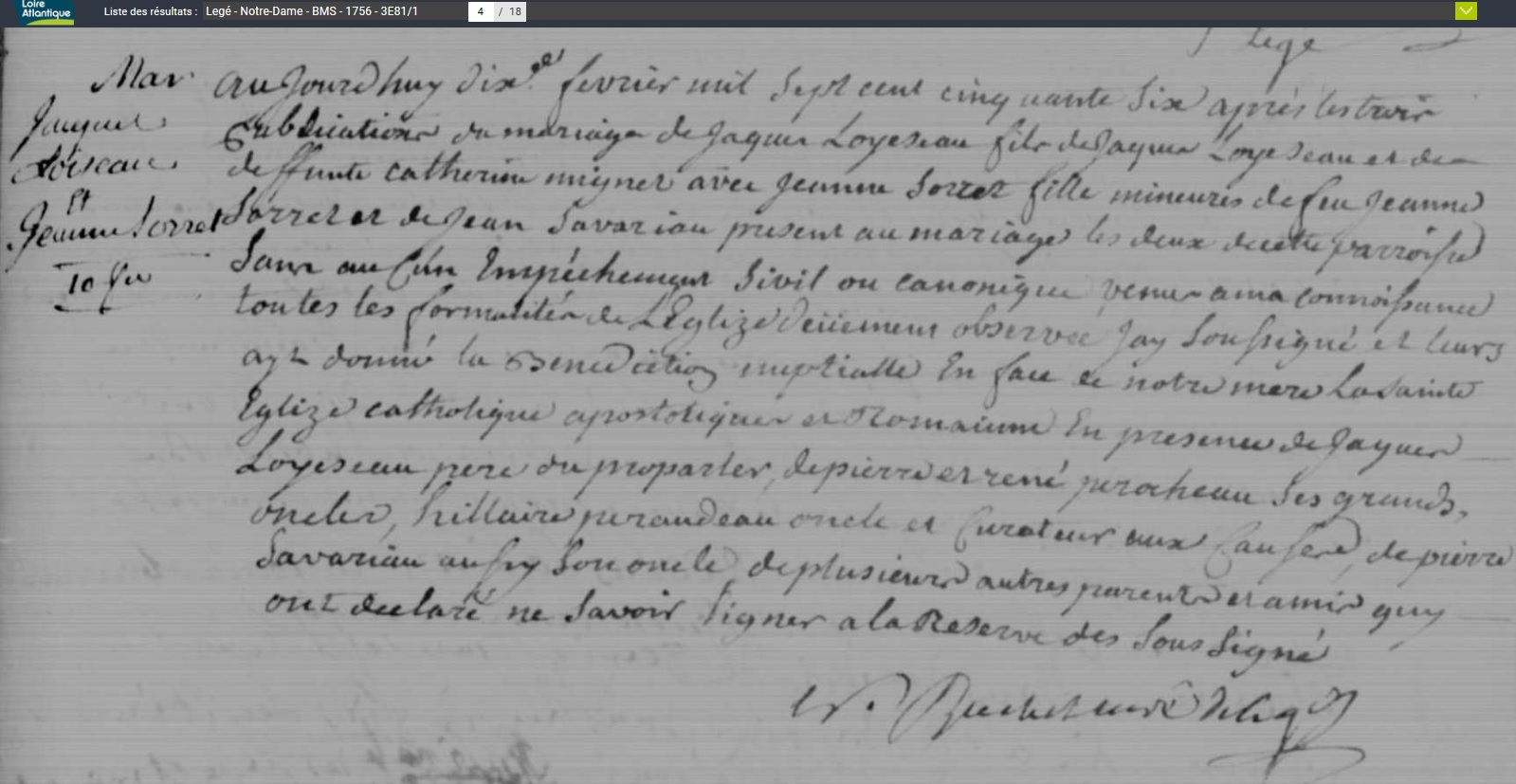 mariée le 10 février 1756 à Legé - Loire-Atlantique (44), avec